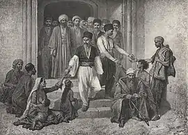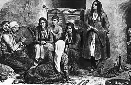 Gypsies arrived on the territory of Crimea with the Golden Horde. In the Crimean Khanate, the Roma, like people of other nations, were not harassed; the authorities did not persecute them and they were not treated with contempt.[5] In Crimea, they led a sedentary and semi-sedentary lifestyle, engage in productive labor and music.[5] In the 18th century, Islam became the traditional religion of the Crimean gypsies. Roma researcher Nikolai Stieber wrote in his essay on Roma in Crimea: