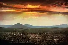 The gold-bearing area of the Cripple Creek district was the core of an ancient volcano within the central Colorado volcanic field, last active over 30 million years ago during the Oligocene.[15] Free or native gold was found near the surface but at depth unoxidized gold tellurides and sulfides were found.