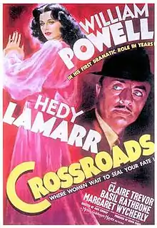 Crossroads is a 1942 American mystery film noir starring William Powell, Hedy Lamarr, Claire Trevor and Basil Rathbone, and directed by Jack Conway. Powell plays a diplomat whose amnesia about his past subjects him to back-to-back blackmail schemes, which threaten his reputation, job, marriage, and future.[2] The film was inspired by the 1938 French film Crossroads which had also had a British remake Dead Man's Shoes in 1940.