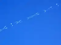 In aerodynamics, the Crow instability, or V.C.I. vortex crow instability, is an inviscid line-vortex instability, named after its discoverer S. C. Crow. The Crow instability is most commonly observed in the skies behind large aircraft such as the Boeing 747. It occurs when the wingtip vortices interact with contrails from the engines, producing visible distortions in the shape of the contrail.