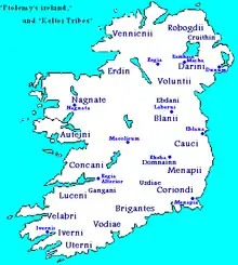 Map of the tribes Ireland per Ptolemy's Geography (2nd century AD); the Cruithin are in the northeast.
