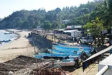 Punta Maldonado is a small cape, which is the furthest point east of the state of Guerrero. It is an important fishing port, especially of rock lobster as well as its large Afro-Mexican population.[7][8] The men go out to sea at night to fish in shifts that can last up to fifteen hours every day. It has a small antique lighthouse very near the border with Oaxaca.[7]