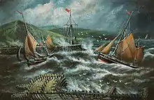 The sea around Ceredigion has traditionally been rich in fish and for many centuries great shoals of herring would be caught in Cardigan Bay. The fish would be landed and sold at all the Ceredigion ports, including Aberaeron, Aberporth and Aberystwyth.[7][8] At Aberystwyth the volume of herring landed increased significantly after the harbour was enlarged during the eighteenth century. Here, the fish were salted between September and November and then packed in barrels for transport by train to England.[9] Herring was also an important food source for local people and the fish were salted in the autumn for winter use.[10]