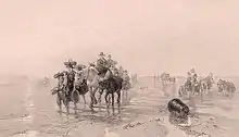 Cockle gatherers on the Llanrhidian Sands, Gower - early morning, etching from a painting by Edward Duncan, 1849, National Library of Wales