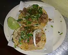 Once considered plebeian fare, by the 19th century tacos had become a standard of Mexico City's cuisine. Workers moving to Mexico City from the rural countryside brought their culinary traditions with them. As unlicensed vendors began selling corn-based dishes on the street, authorities struggled to tax local taquerias, imposing licensing requirements and penalties, they recorded some details of the types of foods being served by these establishments. The most frequent reference was for tacos de barbacoa. Also mentioned are enchiladas, tacos de minero and gorditas, along with oyster shops and fried fish stands. There is evidence of some regional specialties being made available for the recent migrants; at least two shops were known to serve pozole, a type of stew similar to hominy that is a staple of Guadalajara, Jalisco.[4]