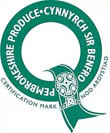Pembrokeshire has its own logo called the Pembrokeshire Produce Mark, this is a certification mark which signifies that a product is made in Pembrokeshire or that retail outlets displaying the logo sell local produce. Members of the scheme display a logo identifying that the products sold have been made in Pembrokeshire or that they sell local products on the premises.[50]