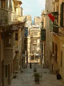 Traces of Siculo-Norman architecture can still be found in Malta's ancient capital of Mdina and in Vittoriosa, most notably in the Palaces of the Santa Sofia, Gatto Murina, Inguanez and Falzon families.[33]