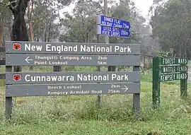 Cunnawarra is a national park located in New South Wales, Australia, 80 kilometres (50 mi) east of Armidale, 10 kilometres (6.2 mi) off the Waterfall Way and 565 kilometres (351 mi) north of Sydney. The 25-kilometre (16 mi) Styx River Forest Way runs from the Point Lookout Road through Cunnawarra National Park to the Kempsey Road. The New England National Park adjoins the Cunnawarra National Park on the north-eastern boundary and the Oxley Wild Rivers National Park joins it on the southern corner.[1]