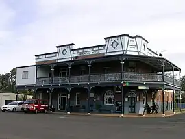 In 1909, the railway station opened as a stop on the Mungindi branch line, but has since closed.[3] The station building was demolished in May 2013 after the roof was damaged by a storm earlier that year.[4] Livestock sales commenced in 1919 in Curlewis and were, for many years, held in alternate weeks at Gunnedah and Curlewis until improvements to the Gunnedah saleyards, eclipsed Curlewis's yardings and led to the yard’s closure.[2]