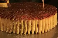 Cut cake, also maren candy (瑪仁糖), maren (麻仁), or qiēgāo, is a confectionery made with candied fruit, corn syrup, flour and nuts.[1] It is a traditional snack of the Uyghur ethnic group in Xinjiang Hotan. Cut cake is made in large blocks, and sold by cutting slices from the block, hence the name "cut cake".