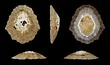 | Five views of a shell of Cymbula oculus | |