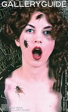 In August 2001 she held an event at Castle von Buhler dubbed "The Great Purge" where she sold off most of her possessions.[38] Von Buhler separated from Adam Buhler and moved to New York City's Meatpacking District. Farewell articles were published in The Boston Globe,[39] The Improper Bostonian[40] and The Boston Phoenix[41] citing her as producing "some of the most sensuous, humorous, ridiculous, outlandish, and inspired art and entertainment in Boston."[42] At this point von Buhler began utilizing unconventional media in her art: video projection, living fauna, found objects, human detritus, and electronic audio. By combining these media, often enhanced with text and electronics, von Buhler's canvasses frequently became kinetic installations.[43] "Regardless of medium, all of von Buhler's pieces require the viewer to get involved: sometimes physically, by feeding a caged animal or inserting a coin to operate a machine. For example, "Sir Repetitious," a man's transparent insides reveal two live rats, hungry for the food and attention of onlookers – feed the rodents with the supplied seed, and you are satisfying "Sir Repetitious" on physical and metaphorical levels. Miss Ann Thrope is a life-sized painting of a woman with two doves perched inside. When the birds move in the piece, they change its equilibrium and alter its intended meaning. A velvet-curtained puppet theater sets the stage for Show and Tell, a multimedia painting that explores the use of word versus action with hidden visual and auditory messages. "Please Don't Look Up My Skirt" is a commentary on date-rape in which a Botticelli-esque girl without arms or legs tries modestly to cover herself, imploring the viewer not to violate her; those who disregard the plea see what they have become when they look up her skirt. Cynth-O-Matic offers various plastic capsules containing actual samples of the artist's body hair and fluids from a vending machine. The piece is von Buhler's critique of those who attend art openings to chat with the artist and scarf hors d'oeuvres without buying any art. For only 25 cents they can buy a piece of the artist. Von Buhler's work provides commentary on morality, vanity, politics, and the art world itself".[43] From 2001 - 2007, von Buhler's work appeared on the covers of New York's Gallery Guide,[44] Communication Arts,[45] Step by Step Graphics,[64] and NY Arts.[46] A photograph of von Buhler taken at her New York loft for The Boston Globe was enlarged and used on billboards advertising the publication.[47] Inspired by lying politicians, von Buhler altered and old carnival machine for "Shake Hands With Uncle Sam." For 25 cents, viewers shake Uncle Sam's hand, the dial spins, and lands on audio samples of "Weapon of mass destruction," "Iran Contra," "No New Taxes," or one of seven other bipartisan audio clips. The piece was created for "The Presidency" exhibit at Exit Art in Manhattan.[48] In 2005, von Buhler created a video for another exhibit at Exit Art, "The Studio Visit".[49] Her video was singled out by New York Times art critic Roberta Smith as one of the best.[50] She also was chosen by the art space to move her art studio to the gallery for a few months where she had to create her work in the window while people watched her through Exit Art's windows.[51] Her fine art appeared on TV in Law & Order SVU as the artwork of a serial killer, and in a fight scene of the show Kidnapped.[52] In March 2006, Art & Antiques named von Buhler as "one of the top contemporary surrealists."[53] However, she has also been linked to the Lowbrow, and Fluxus movements.[54] Her art has been displayed in galleries and museums around the world, and her work is in the collections of Howard Stern, Jann Wenner, The Nassau County Museum of Art, The Staten Island Museum, The University of Toronto, The Opera Company of Philadelphia, Dana Farber Cancer Institute, and hundreds of personal collections.[37]