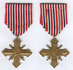 The Czechoslovak War Cross 1939 (Československý válečný kříž 1939 in Czech, Československý vojnový kríž 1939 in Slovak) is a military decoration of the former state of Czechoslovakia which was issued for those who had provided great service to the Czechoslovak state (in exile) during the years of World War II.