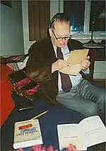 Miłosz was finally reunited with his family in 1953, when Janina and the children joined him in France.[59] That same year saw the publication of The Captive Mind, a nonfiction work that uses case studies to dissect the methods and consequences of Soviet communism, which at the time had prominent admirers in the West. The book brought Miłosz his first readership in the United States, where it was credited by some on the political left (such as Susan Sontag) with helping to change perceptions about communism.[60] The German philosopher Karl Jaspers described it as a "significant historical document".[61] It became a staple of political science courses and is considered a classic work in the study of totalitarianism.