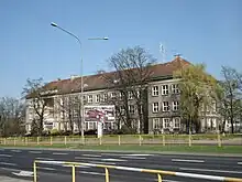 During the war[38] at least 11 students were killed by the Germans.[39] When most of Poznań was seized by the Red Army yet with the German troops still holding out in the Citadel, some teachers approached the nascent Polish administration about re-opening of the school;[40] few days later the Młyńska premises were almost entirely destroyed during the final phase of the battle. An attempt to seize a non-school building still standing on the former Luisenschule plot proved unsuccessful.[41] Following a brief period when the school operated jointly with the Potocka College[42] and once a formal decision to re-open the school had been adopted,[43] recruitment took place in the former Chamber of Commerce building.[44] In 1945-1948 Dąbrówka was hosted in premises of Państwowe Liceum Pedagogiczne,[45] Zamoyska College[46] and the former Colegium Marianum.[47] The school commenced the schooling year of 1948/49 at Plac Bernardyński, in the premises taken over from another college, shut down as hotbed of reactionary education.[48] At that time the heavily damaged building at Młyńska Street was refurbished and turned into a dormitory for non-resident girls of Poznań colleges.[49]