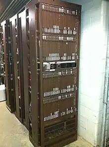 The DMS-100 is a member of the Digital Multiplex System (DMS) product line of telephone exchange switches manufactured by Northern Telecom. Designed during the 1970s and released in 1979, it can control 100,000 telephone lines.[1]