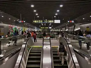 The Taipei Metro Daan Park station is a metro station on the Red Line located beneath Xinyi Rd, Sec. 3 between Xinsheng South Rd. and Jianguo South Rd. in Da'an District, Taipei, Taiwan.[2] It is located at the northern end of the Daan Forest Park for which it is named. The station was opened on 24 November 2013.[3]