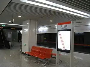 Dachang Town (simplified Chinese: 大场镇; traditional Chinese: 大場鎮; pinyin: Dàcháng Zhèn) is a station on Line 7 of the Shanghai Metro[1] located in Baoshan District, Shanghai, People's Republic of China. It opened in 2009.