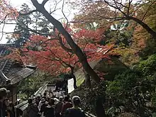 The Chigiri-en (契園), behind the main hall, is a forested botanical garden at the foot of Mount Chigiri on the border between Chikushino in Fukuoka Prefecture and Kiyama in Saga Prefecture. In the gardens, in the latter half of April and the early half of May about 50,000 azalea plants are in bloom here in a whirl of color attracting hundreds of flower lovers.[6]