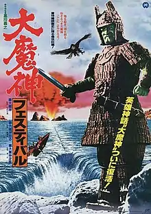 Daimajin (Japanese: 大魔神, Hepburn: Daimajin) is a series of Japanese films. The trilogy of films were all shot simultaneously and released in 1966 with three different directors and predominantly the same crew.[2] The series was produced by Daiei Film and contained similar plot structures involving villages being overthrown by warlords, leading to the villagers attempting to reach out to Daimajin, the great demon god, to save them.[3]