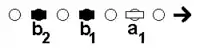 If B has an additional piece b2 behind b1, but no more than four positions behind a1, the first few probabilities are increased by including the possibility of jumping over a1 with b1 and then removing a1 using b2: