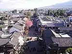 Dali Town (大理镇) formerly known as Tali,[lower-alpha 1] is another division of Dali City, located 10 km (6.2 mi) north of Xiaguan. This town, commonly referred to as Dali Old Town (大理古城) to distinguish it from the city seat in Xiaguan, is usually the Dali referred to in tourist publications. The old town is one of the most popular tourist destinations in Yunnan, known for its natural scenery, historical and cultural heritage, and vibrant nightlife.[3]