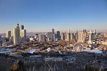Dalian Laodong Park (Chinese: 大连劳动公园) is the park in the center of Dalian, Liaoning Province, China. It is located south of the Qingniwaqiao CBD, at the northern foot of Green Mountain (绿山), and only 500 meters from Dalian Railway Station. With an area of 1.02 million square meters, it is the largest park in the city center and the earliest large-scale urban park. The annual tourist volume reaches more than 3 million people.[1] It is such a popular place among the Dalianites that matchmakers post, on weekends, the paper slips on the branches of the trees in the eastern corner of the park, showing potential brides and bridegrooms.