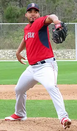 ![]() Hinojosa pitching for the Boston Red Sox in 2015 spring training | |||||||||||||||