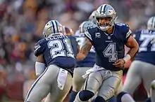 In game 10, Romo suited up for the first time in the season and was the backup quarterback. Dallas defeated the Baltimore Ravens to win their 9th straight game, breaking a franchise record of 8 straight games set in 1977. It also marked rookie running back Ezekiel Elliott breaking Tony Dorsett's single-season rushing record for a Cowboys rookie. Prescott also tied an NFL rookie record held by Russell Wilson and Dan Marino by throwing multiple touchdowns in 5 straight games. Dallas finished 13–3, tying their best 16-game regular-season record. While Dallas defeated Green Bay at Lambeau Field in week 6, the Packers would win at AT&T Stadium in the divisional round of the NFL playoffs on a last-second field goal, ending the Cowboys’ season.