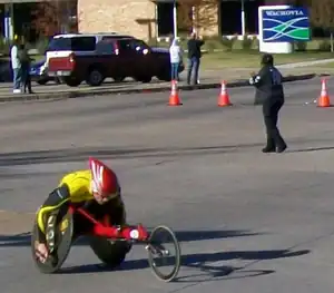 The race includes both runners and wheelchair racers.