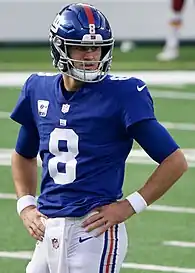 Daniel Stephen Jones III (born May 27, 1997), nicknamed Danny Dimes,[1][2][3] is an American football quarterback for the New York Giants of the National Football League (NFL). He played college football at Duke and was selected sixth overall by the Giants in the 2019 NFL Draft.