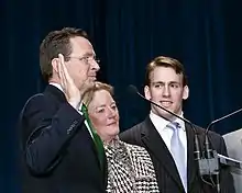 In the state's legislative elections of November 2012, Republicans tried to tie Democratic legislators to Malloy, who had consistently faced negative job approval ratings.[35] The strategy did not work and the Democrats recorded no losses in either house. Malloy called the results a "vindication" and said that "Tough times require tough decisions that are not immediately popular... you should not be afraid to make tough decisions, particularly if you are transparent about those decisions, if you explain why those decisions were necessary. In our case, the tough decisions we had to make were in fact caused by Republican governors."[36]