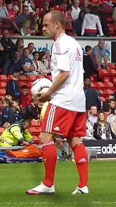 Murphy in Liverpool kit during Jamie Carragher's testimonial match (2010)