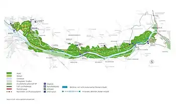 The Park was designated an IUCN category II national park and spans the areas of Vienna (Lobau), Groß-Enzersdorf, Orth an der Donau, Eckartsau, Engelhartstetten, Hainburg, Bad Deutsch-Altenburg, Petronell-Carnuntum, Regelsbrunn, Haslau-Maria Ellend, Fischamend and Schwechat.