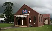 The name Dapto is said to be an Aboriginal word either from Dabpeto meaning "water plenty", or from tap-toe which described the way a lame Aboriginal elder walked.[2] The suburb was officially founded in 1834, when George Brown transferred the Ship Inn from Wollongong to Mullet Creek Farm, in an area now named in his honour as Brownsville. After an unsuccessful attempt at wheat growing in the 1850s, Dapto embraced the dairy industry. In 1887 the railway opened and a butter factory was established. This began a transformation of Dapto and the town centre shifted south to where the new station was located. The Australian Smelting Company's works were established on Kanahooka Road and employed over 500 men. A railway, operated by the Illawarra Harbour and Land Corporation Limited, connected the smelter with the Government railway at Dapto.[3] By 1903 the Commissioner for Railways declared that Dapto was the most valuable station on the Illawarra line, its traffic being double that of Wollongong. The books John Brown of Brownsville (2012), Gooseberry and Hooka (2012) and Lake Illawarra: an ongoing history (2005) – all written by Joseph Davis and published by the Lake Illawarra Authority – contain much detail about Dapto's history.