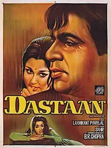 Dastaan (lit. 'The Tale') is a 1972 thriller film produced and directed by B. R. Chopra. The film stars Dilip Kumar, Sharmila Tagore, Bindu, Prem Chopra, Iftekhar, I. S. Johar and Madan Puri. The film's music is by Laxmikant-Pyarelal. Dastaan was a commercial failure and Dilip Kumar's first outright flop in 6 years since Dil Diya Dard Liya (1966).[1] This movie is based on director's own 1951 film named Afsana, starring Ashok Kumar in leading role.