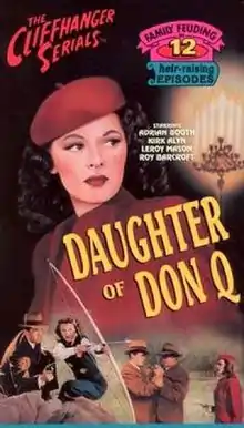 Daughter of Don Q (1946) is a Republic Movie serial. It combines elements of the B-Western genre with contemporary crime films, especially the popular "land grab" plot in which the villain attempts to steal apparently worthless land from the heroine (in this case) because he secretly knows it is worth a fortune. In this case, Dolores Quantero, is the rightful heir to extremely valuable metropolitan land which another family member, Carlos Manning, wants for himself.