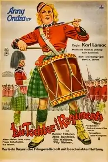 Daughter of the Regiment (German: Die Tochter des Regiments) is a 1933 Austrian-German comedy film directed by Carl Lamac and starring Anny Ondra, Werner Fuetterer and Adele Sandrock.[1] It is loosely based on the 1840 opera La fille du regiment by Gaetano Donizetti, with the setting updated from the Napoleonic to the First World War. A separate French-language version was also released, with Ondra reprising her role.