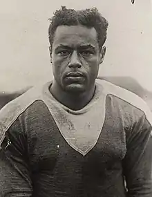 In October 1929, he was moved from the guard position to become NYU's starting quarterback.[8] One week later, reports surfaced that NYU had reached a "gentleman's agreement" to bench Myers for a scheduled game with the University of Georgia. The NAACP sent a letter of protest, and the chairman of NYU's athletic control board followed with a statement denying any such agreement and stating, "If we thought Georgia would show such poor sportsmanship as to demand Myers' removal from the lineup we would cancel our contract with the southern school."[9] Gallico also wrote a column advocating that NYU play Myers.[10] In the end, NYU agreed not to play Myers when Georgia refused to participate if Myers played.[3][11] In response to the decision, Heywood Broun called NYU a "gutless college with a gutless coach."[12] The game proceeded, and, despite demands from NYU fans in the stands, Myers did not play.[13]