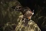 | The white nest swiftlets of Borneo, explains Attenborough, use a very peculiar next material: their spittle. They build their nests on vertical cave walls in total darkness, using a simple form of echolocation to navigate. Bats, which roost hanging from cave roofs, have a more advanced echolocation system which developed earlier in evolutionary history. Attenborough recalls his attempts to film here, which involved him climbing a mound of bat guano crawling with cockroaches. After delivering his piece to camera on the ability of bats to skilfully navigate in the dark, the camera light was switched off and "a bat hit me fore-square in the face." He goes on to describe how men from nearby villages come to the cave every year to collect the swiftlets' nests. This is a dangerous activity, but the nests are prized in Chinese cuisine for their medicinal and intellectual benefits. They are mixed with chicken, corn, water and spices to create bird's nest soup. Attenborough sampled the raw nest material, but confesses that to his palette, it "tastes of nothing whatsoever". | |||