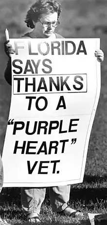 A group called Veterans for Peace set up a round-the-clock vigil at the Florida Vietnam War Memorial that was intended to last from 7:00 pm on April 20, 1986, to 7:00 am on April 22, the time of Funchess's scheduled execution. The stays which delayed the execution of Funchess's sentence also prolonged the vigil. Members of the group called Funchess a "forgotten man" and protested that neither Governor Graham nor the courts had taken Funchess's PTSD into enough consideration.[17][26]
