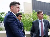 Holt was elected mayor on February 13, 2018, defeating Taylor Neighbors and Randall Smith in a nonpartisan race.[22] Holt was sworn in as mayor on April 10.[23] He resigned from the state senate before taking office. At the time of his swearing-in, Holt was 39 years and one month old, making him Oklahoma City's youngest mayor since 1923 and the youngest mayor of a U.S. city over 500,000, as well as Oklahoma City's first Native American mayor.[2][24] In 2019, Holt and city leaders opened the city's new streetcar system, a project funded by MAPS 3.[25]