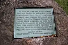 A 1960 plaque dedicated to David Hudson and his party by the Hudson Library and Historical Society, marking a plot of land that was set aside in 1805 to be used as a public square.