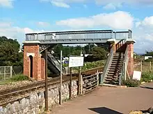 In 1935 a camp coach was stationed in the goods yard which could be rented by holiday makers but the facility was withdrawn in 1939.[5] Camping coaches were reintroduced by the Western Region in 1952, and by 1963 there were nine coaches stationed here. After 1964 the public camp coach service was withdrawn but the coaches at Dawlish Warren continued to be managed by the British Rail Staff Association for its members. The old coaches were replaced for the 1982 season by the current vehicles, since when the connection to the goods yard has been removed.[6]