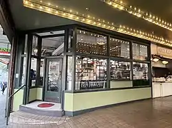 DeLaurenti Food & Wine is an Italian grocery store and delicatessen at Pike Place Market. The business stocks various products such as antipasto, breads, cheeses, canned fish, olives and olive oil, dried pastas, prosciutto, salami, and tomato sauce.[2] The deli serves pizza, Italian sandwiches, and meatballs in marinara sauce.[3] The Parma sandwich has prosciutto, arugula, white truffle oil, and shaved Parmesan on an Italian sandwich roll.[4]