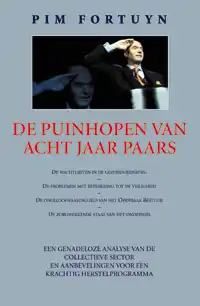 De puinhopen van acht jaar Paars (pronounced [də ˈpœynoːpə(n) vɑn ɑxt jaːr ˈpaːrs] ⓘ, English: The Wreckage of Eight Years of Purple) is a political non-fiction book released by the Dutch political commentator and aspiring lawmaker Pim Fortuyn in 2002, two months prior to his assassination. In the book, Fortuyn sharply criticizes the then ruling "Purple" coalition government and its direct predecessor (both composed of PvdA, VVD and D66) on nearly all areas of their policies.