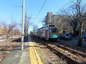 Dean Road station is a light rail stop on the MBTA Green Line C branch, located in the median of Beacon Street in Brookline, Massachusetts. The stop has two staggered side platforms, the platform before the grade crossing in each direction.