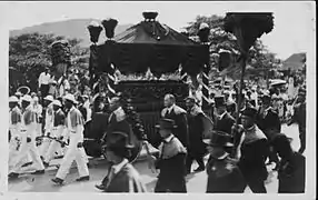 Iaukea was in charge of making the funeral arrangements, but territorial governor Lucius E. Pinkham accorded her the honor of a state funeral and took charge of it.[4] According to Hawaiian tradition, it was believed that the birth and death of an aliʻi would be heralded by a natural phenomena. Schools of the red āweoweo fish, traditionally associated with the death of a member of the Hawaiian royal family, were seen off the coast of Oahu months before Liliuokalani's death.[5]