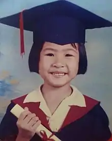 ![]() A photograph of Lim Shiow Rong at her kindergarten graduation | |