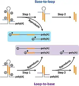 - Library sequencing: The RNA is then ligated and used to form cDNA strands via reverse transcription. The cDNA is then denatured and replicated via polymerase chain reaction (PCR). This yields a library generated and sequenced using high-throughput, deep sequencing methods.[5]